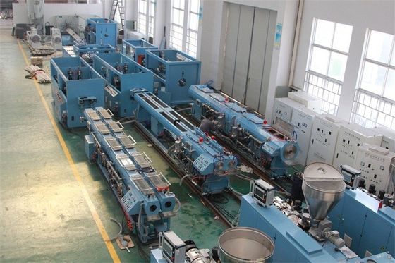 Pvc die pijpmateriaal inpassen is hoofdzakelijk samengesteld uit een kegel tweeling-schroefextruder, en is uitgerust met verschillende pijp hoofdvormen en overeenkomstige hulpmachines. Het wordt hoofdzakelijk gebruikt om dubbele pvc-pijpen te produceren. De pvc-geproduceerde pijpen worden hoofdzakelijk voor elektricien gebruikt die pijpen en dergelijke inpassen. De productielijn maakt volledig gebruik van de uitdrijvingscapaciteit van de extruder aan de pijpen van de opbrengs klein-diameter, die uiterst hoog kunnen bereiken - kwaliteit, hoge productieefficiency, veilige en geschikte verrichting en gebruik.